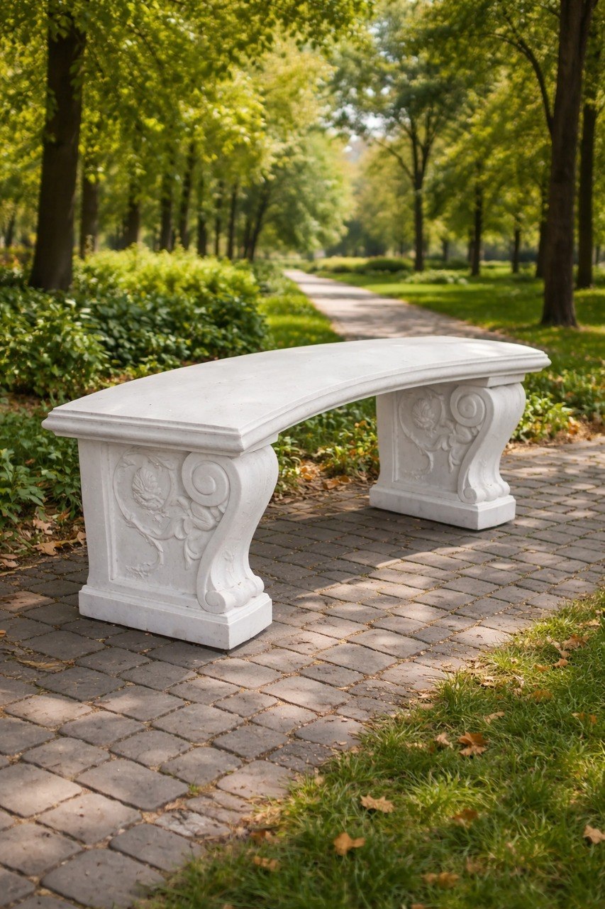 Скамья из архитектурного бетона — это долговечное и эстетичное решение для частных и общественных пространств. Она помогает формировать зоны отдыха, поддерживает классический стиль и легко комбинируется с фонтанами, ротондами и другими элементами благоустройства, создавая гармоничный и продуманный архитектурный ансамбль.