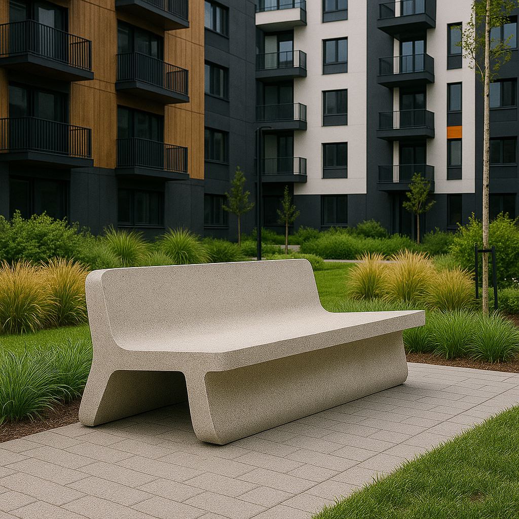 Элегантная скамья из бетона — идеальное сочетание формы, функциональности и долговечности для вашего сада, парка или общественного пространства.