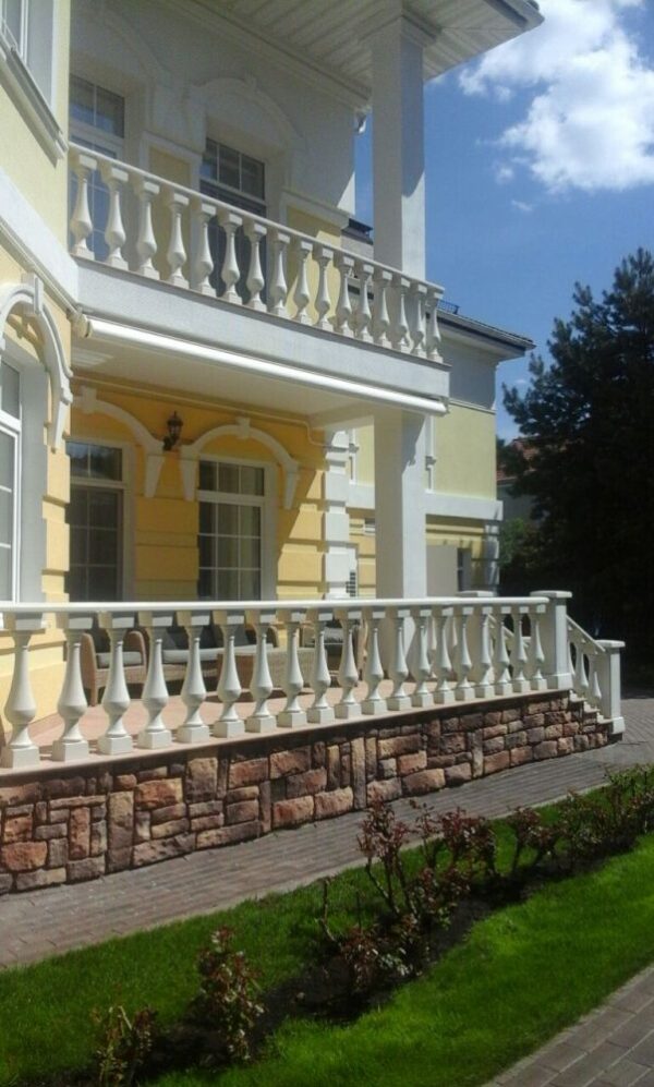 Балясина изготовлена в традиционном архитектурном ключе. Подчеркнутая фигурность ее геометрии и визуальная легкость делают эту модель оптимальной для создания классических балюстрад самого разного назначения — ограждений для террас, балконов, лестниц фасадной группы и т.д. Балясины органично сочетаются с классическими зданиями и используются в традиционных садово-парковых ансамблях в Москве.