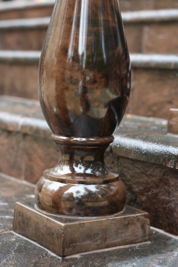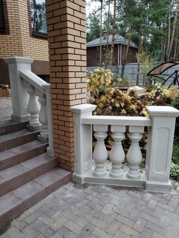 Балясина изготовлена из прочного архитектурного бетона, модифицированного пластификаторами и другими присадками. Для дополнительной прочности все изделия армируются шпилькой 12мм. Представленный вариант балясины — оптимальное решение для создания балюстрад в классическом стиле. Арматура внутри балясин. Металлическая сетка в перилах, основаниях и тумбах. Окрас всех изделий по всей полости.