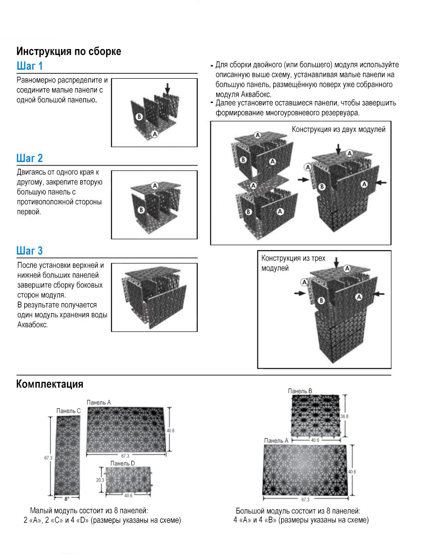 Модуль хранения воды Аквабокс малый – это современная модульная система хранения воды для “сухих водопадов”, систем сбора дождевой воды и других водных и ландшафтных проектов.