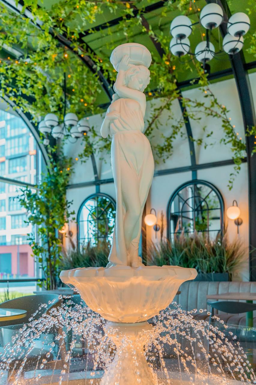 Его основа выполнена из прочного архитектурного бетона, а сборные борта надежно фиксируются на пластиковой чаше. В центре композиции – изящная скульптура Афродиты, которая служит сердечником, создавая плавное течение воды.