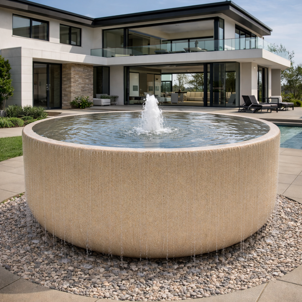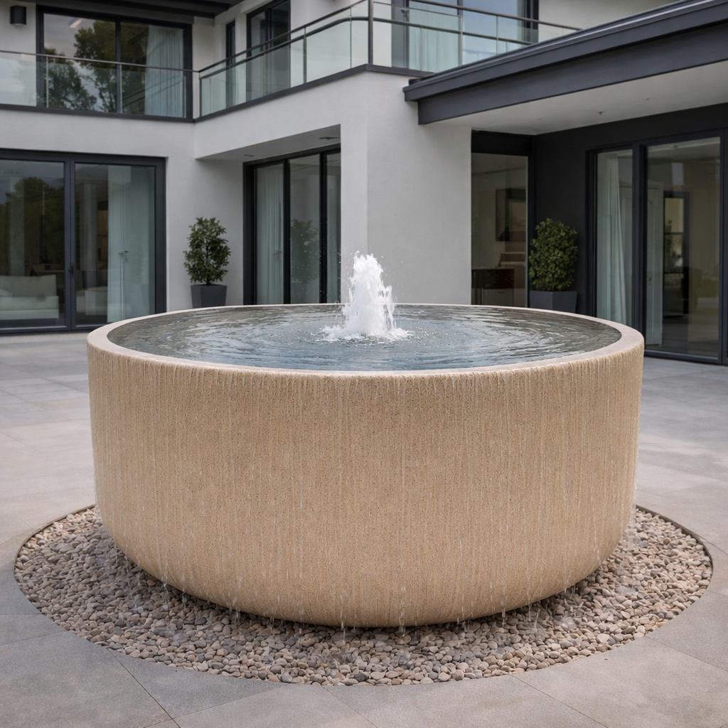 Фонтан готов к масштабным проектам: диаметр 1800 мм делает изделие особенно заметным и впечатляющим — идеально для крупных участков, публичных или частных зон, где фонтан выступает не просто как декоративный элемент, а как архитектурная деталь.