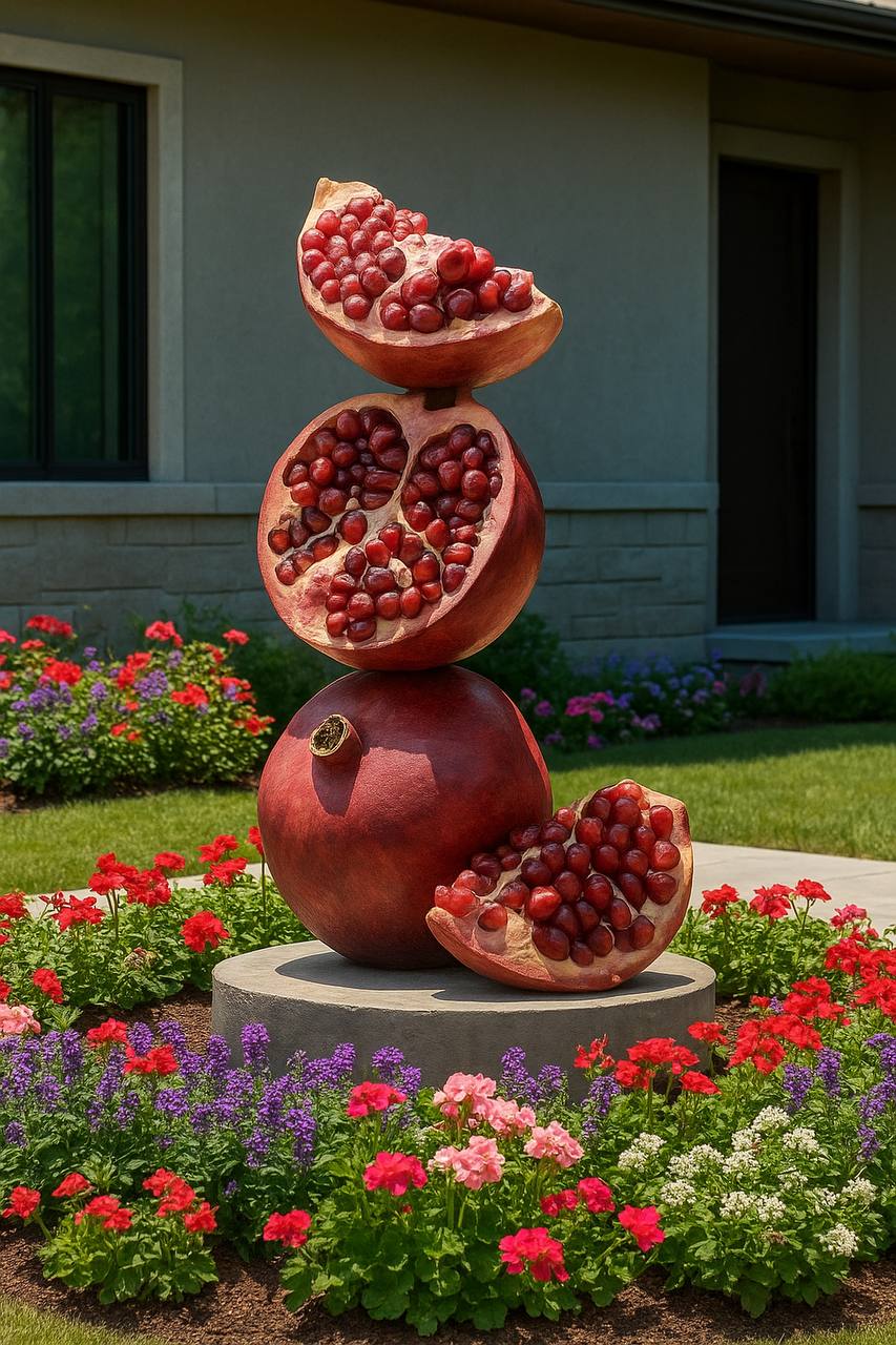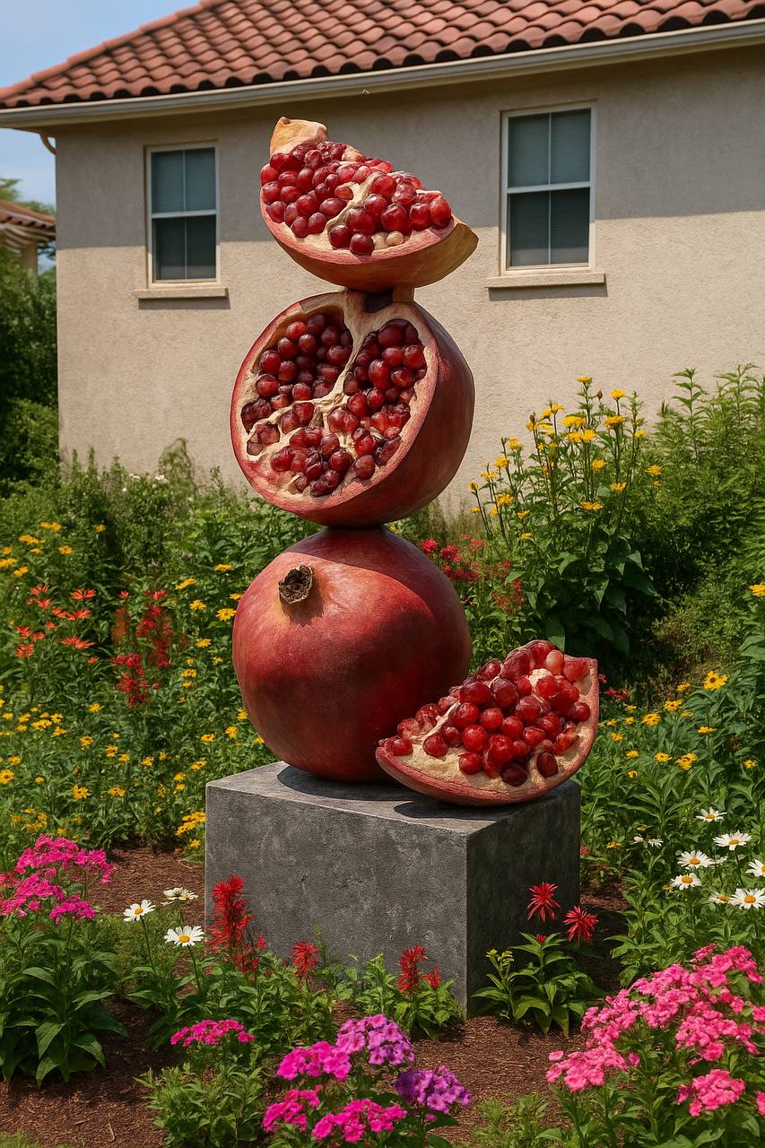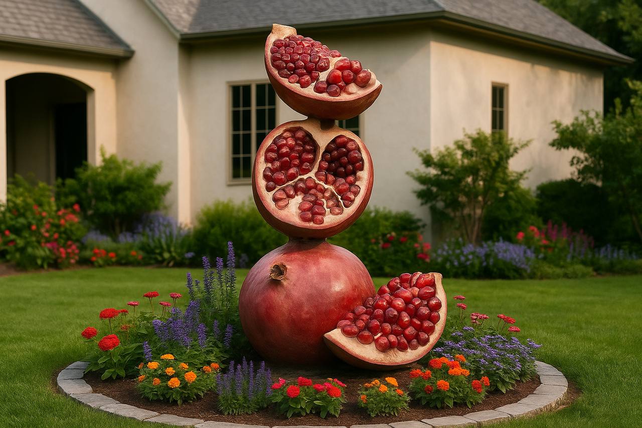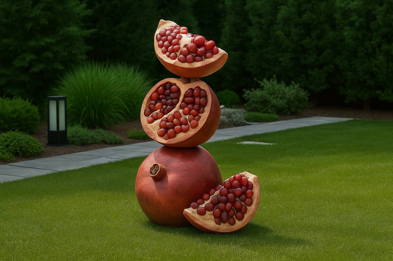 Скульптура в виде граната — это стильный арт-объект, выполненный из высокопрочного композита и расписанный вручную, что придаёт поверхности естественную глубину цвета и максимальную реалистичность. Изделие не выгорает, не боится влаги, перепадов температуры и сохраняет презентабельный вид долгие годы — идеальное решение для профессиональных проектов.