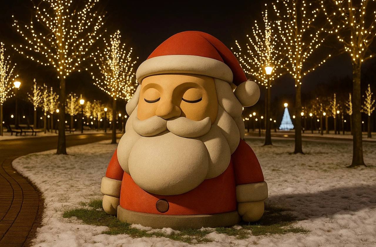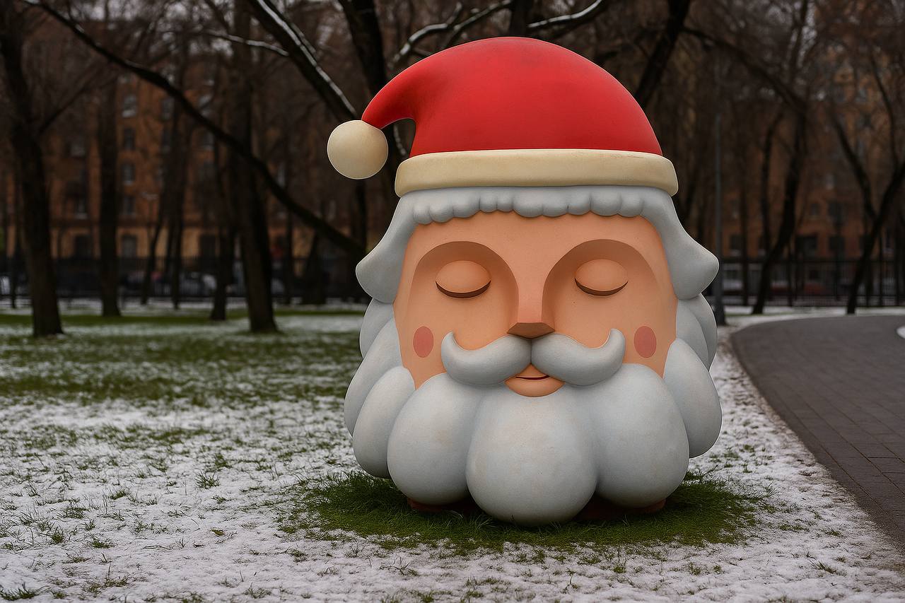 Каждая новогодняя скульптура — снеговик, Дед Мороз или гигантские ёлочные шары — вызывает искреннюю улыбку.