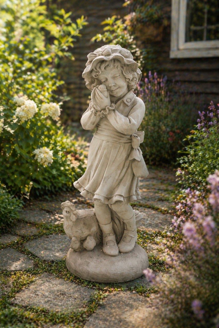 Милая девочка держит птенца у своего личика, нежно прижимаясь к нему. У её ног играют ещё несколько птенчиков. Эта садовая статуя несёт в себе столько нежности и гармонии! Отличный подарок для мамы или бабушки. Скульптуру девочки с птенцом в Москве можно установить в саду, на даче и даже в самом доме. Эта статуэтка придаст вашему интерьеру искренности и доброты.