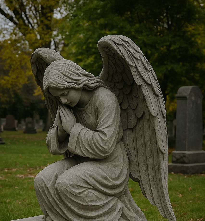 Скульптура “Ангел в молитве” — вечный символ утешения, защиты и духовного покоя. Это живое воплощение смирения, любви и духовной защиты. Ангел, склонившийся в молитве, словно охраняющий покой усопшего, — символ тихого утешения и вечного присутствия. Он станет вашим тихим собеседником в минуты раздумий.