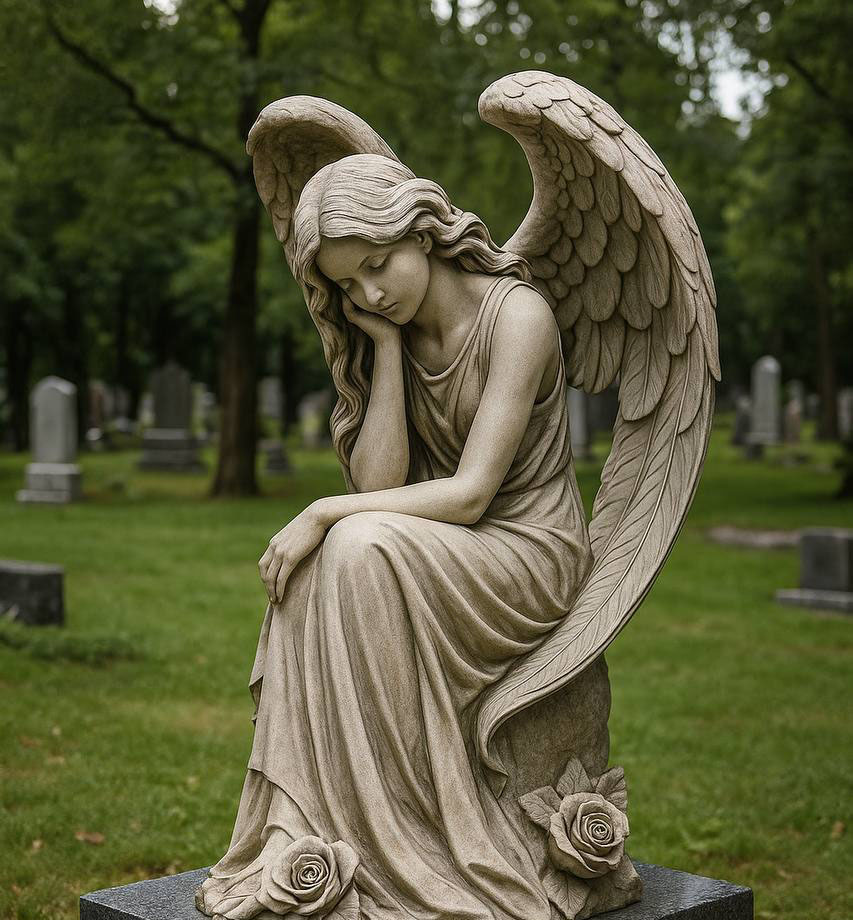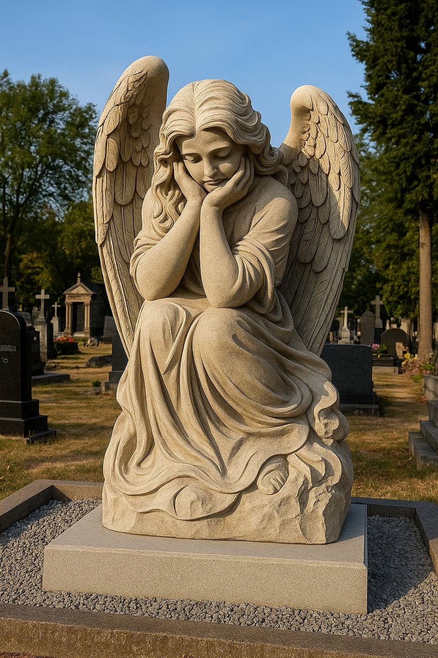 Эта скульптура — не просто украшение могилы или сада. Это живое воплощение скорби, любви и надежды. Ангел, склонивший голову на руку, словно погруженный в молчаливую молитву, — символ тихого утешения и вечного покоя. Он станет вашим тихим собеседником в минуты раздумий.