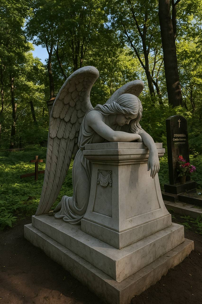 Скульптура «Плачущий Ангел» — это выразительный и глубокий памятный образ, созданный для тех, кто ищет по-настоящему знаковый мемориал на могилу. Такой памятник не просто украшает место захоронения — он передает чувства любви, светлой памяти и тихой скорби.