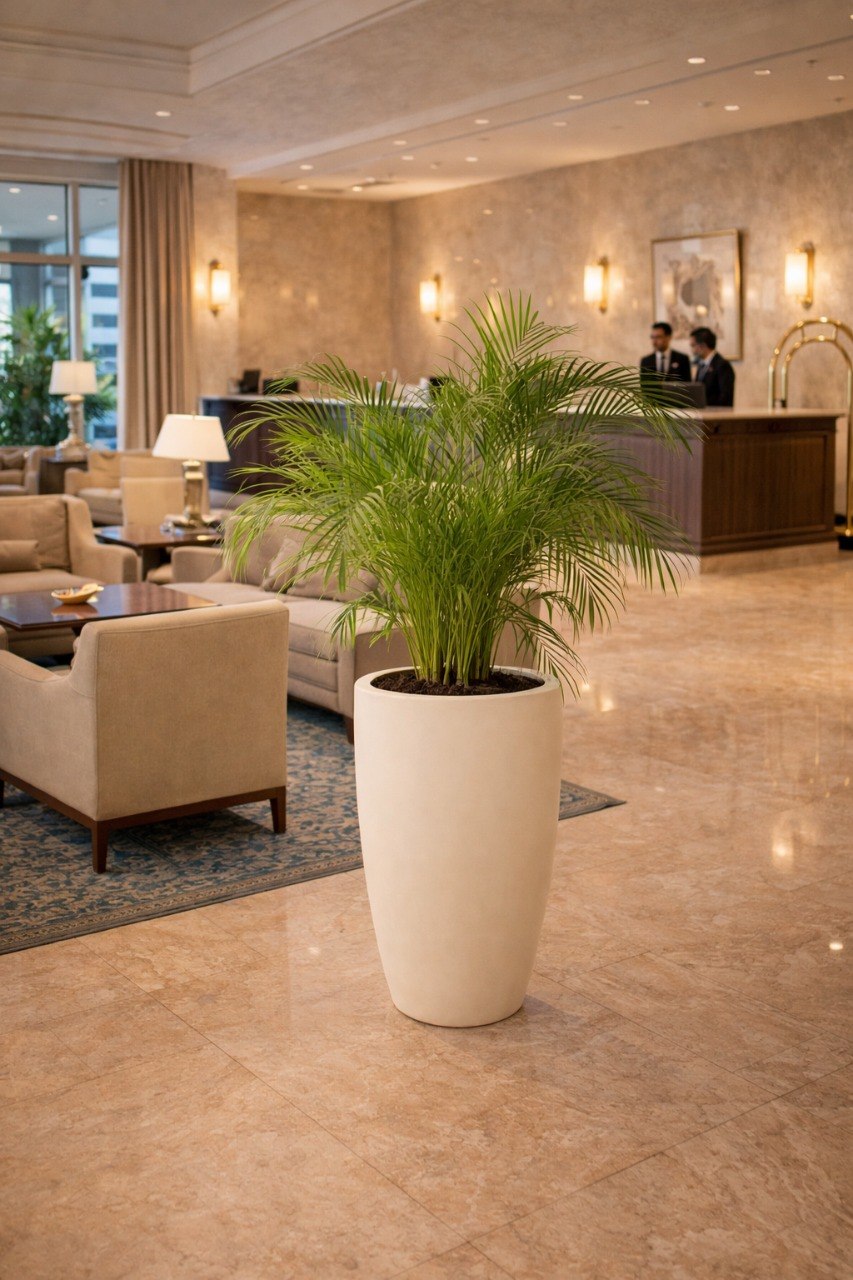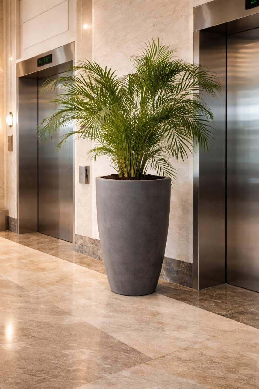 Классический лофтовый вазон из прочного архитектурного бетона. Отлично будет смотреться в помещениях в стиле лофт. По умолчанию идёт без покраски. Возможна покраска под бронзу, золото и др. Имеется дренажное отверстие для вывода влаги.