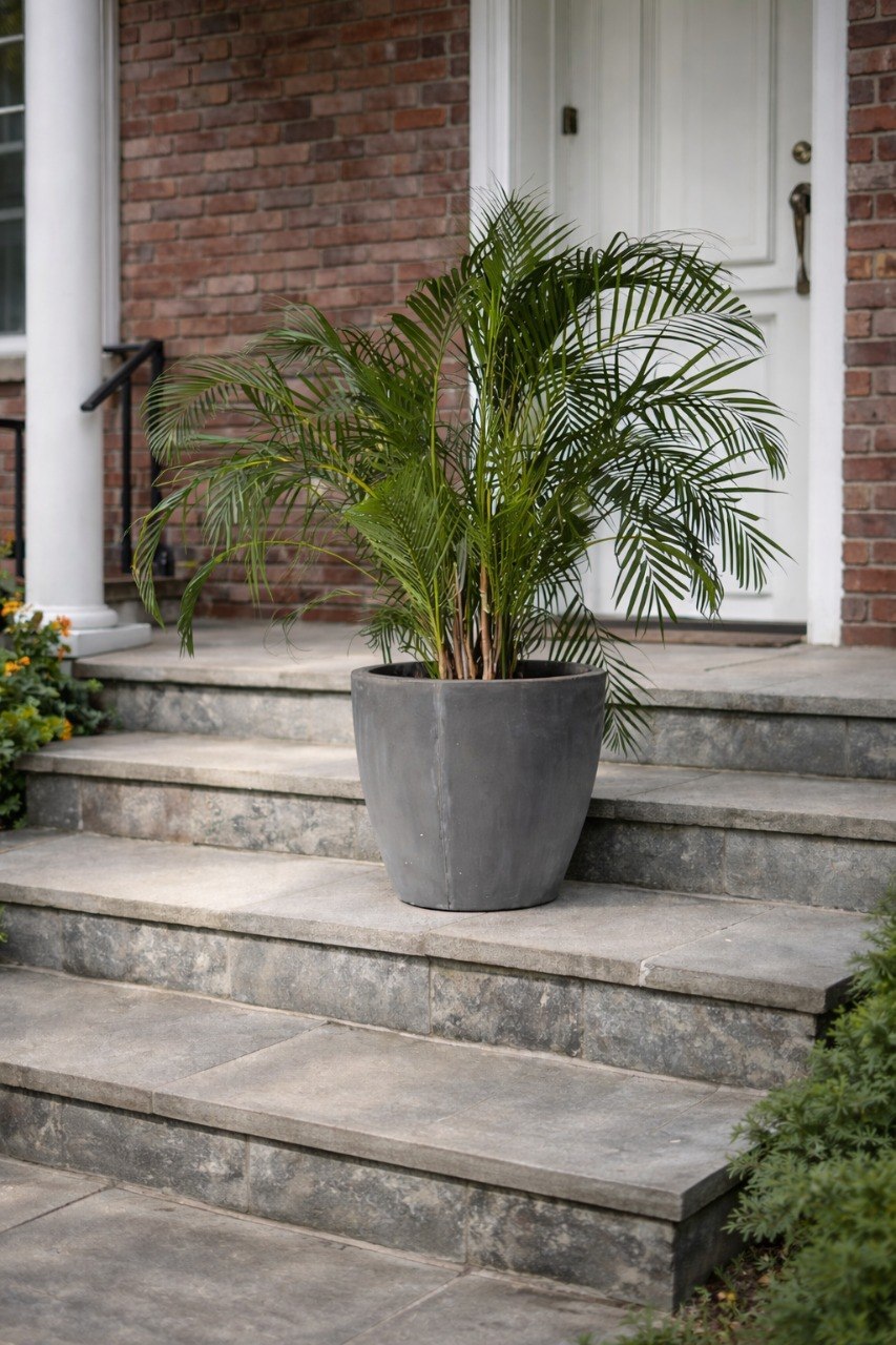 Вазон изготовлен из архитектурного бетона с улучшенными эксплуатационными характеристиками, достигнутыми за счет добавления специальных присадок и пластификаторов. Технология отливки на вибростоле обеспечивает равномерную усадку бетона без пустот и пористости, что сказывается на безупречной фактуре изделия и его прочности.
