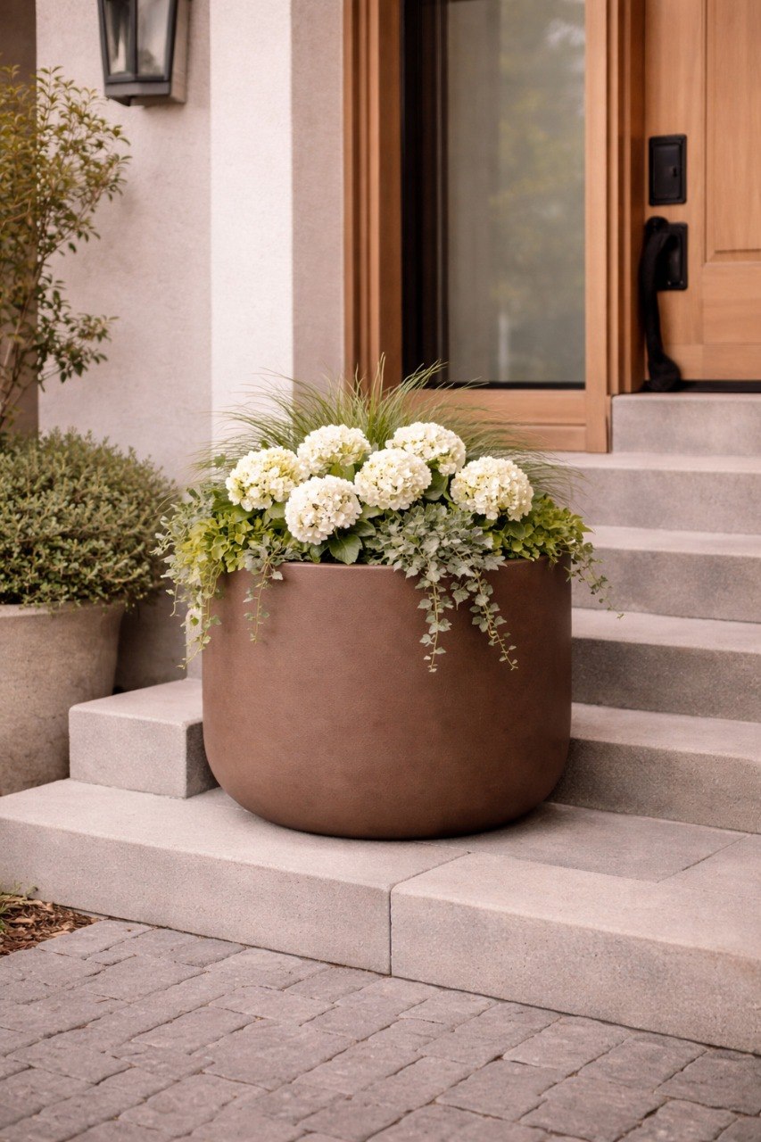 Материал не боится влаги и температурных перепадов, что позволяет использовать изделие как внутри помещений, так и на улице. При этом кашпо легче бетонных аналогов, что упрощает транспортировку и установку.