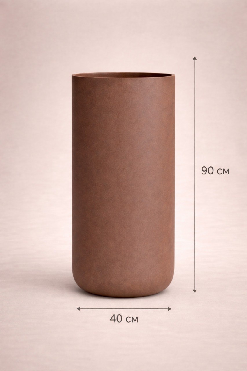 Благодаря продуманным пропорциям (диаметр 40 см, высота 90 см), кашпо отлично подходит для средних и крупных растений, включая декоративные композиции с ниспадающей зеленью или цветами.