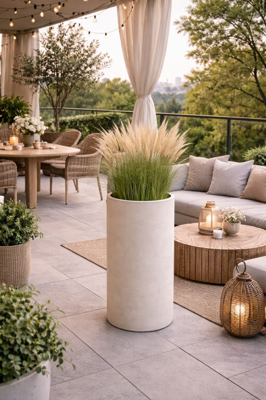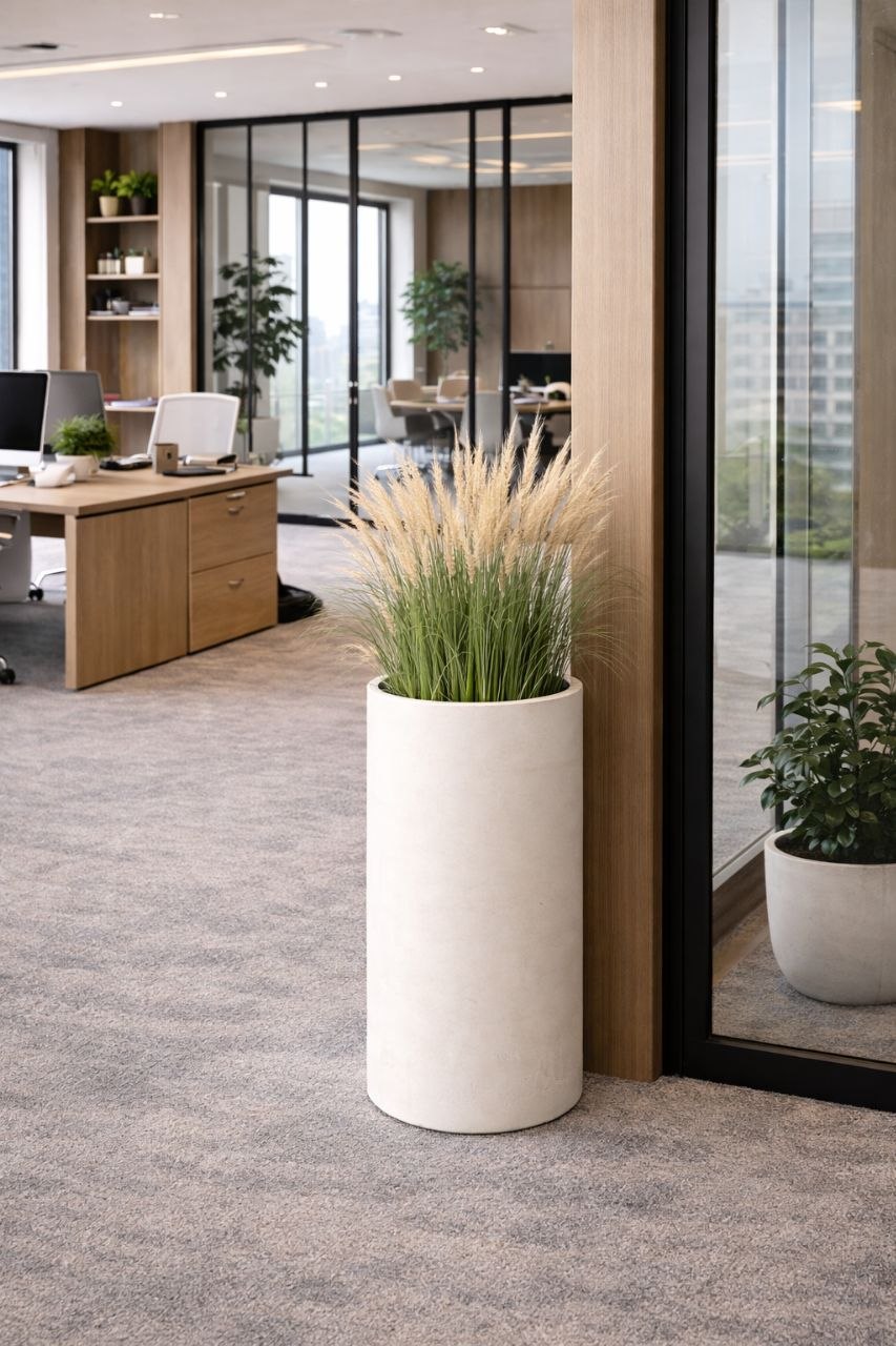 Кашпо изготовлено из архитектурного бетона с улучшенными эксплуатационными характеристиками, достигнутыми за счет добавления специальных присадок и пластификаторов. Технология отливки на вибростоле обеспечивает равномерную усадку бетона без пустот и пористости, что даёт получить безупречную фактуру изделия и его прочность.