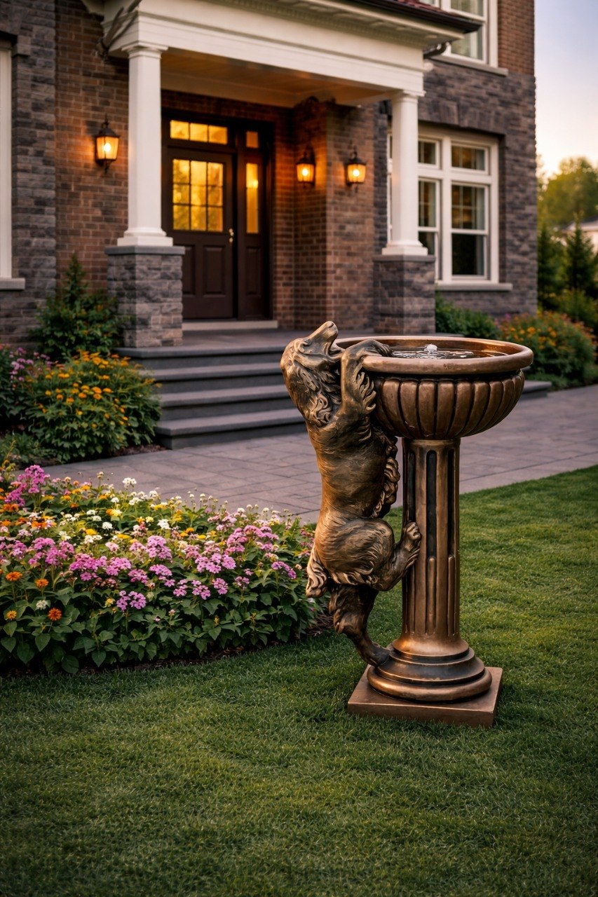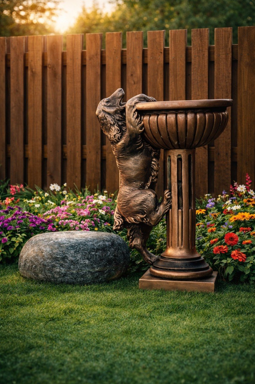 Кашпо с собакой — декоративная цветочница, сочетающая функциональность и выразительный художественный образ. Скульптурная композиция с собакой формирует яркий акцент и делает изделие заметным элементом ландшафтного дизайна.