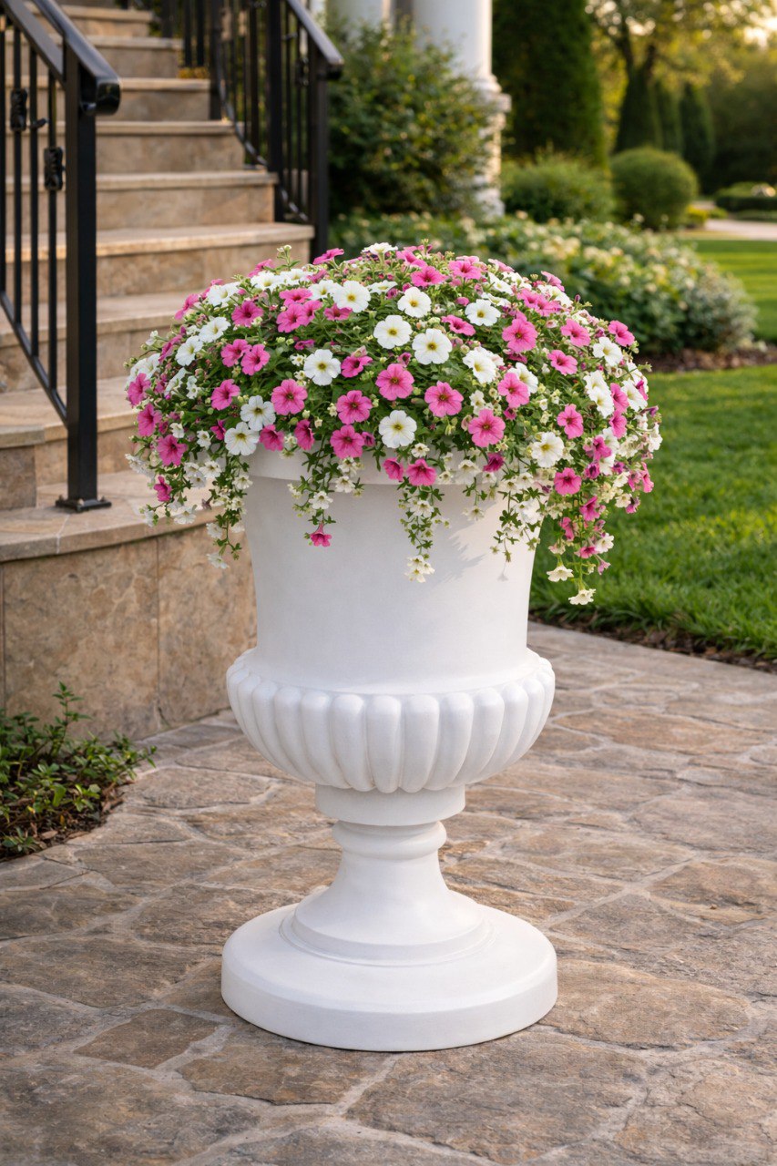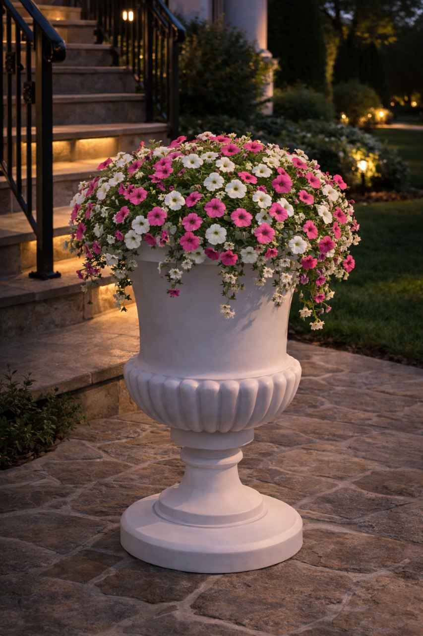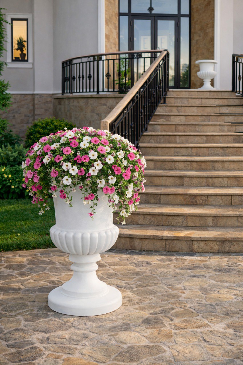 Такой вазон помогает создать ощущение завершённости пространства, добавляет ему масштаб и подчёркивает продуманность среды — независимо от того, используется ли он в частном саду или в общественной ландшафтной среде.
