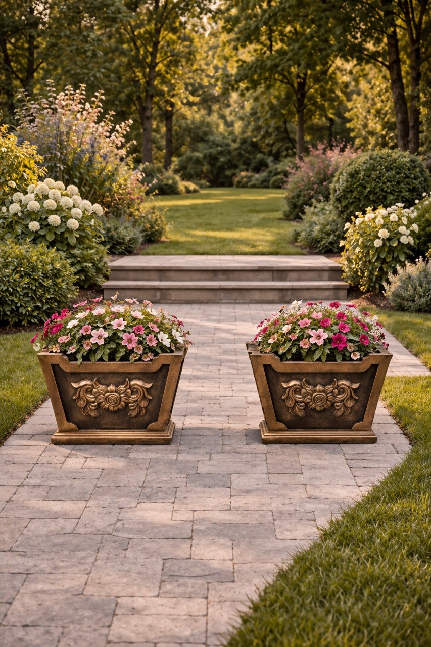 Данные вазоны часто используются как дополнительные украшения для фонтанов.