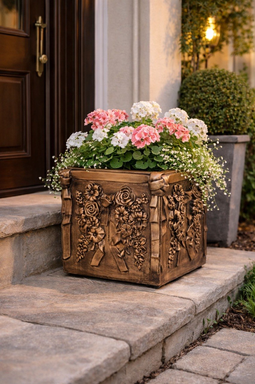 Именно в городском озеленении в Москве часто можно встретить вазоны подобных форм, ведь они отлично подходят для декора небольших дворов, садов и беседок, а также отлично выполняют роль цветочницы.