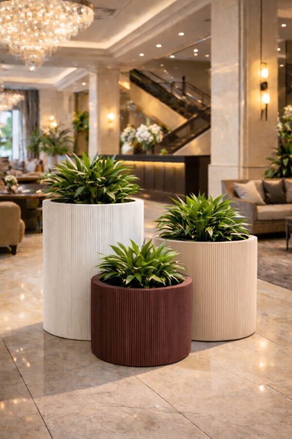 Да. Современные уличные вазы часто используют в ресторанах, гостиницах, бизнес-центрах, на террасах и в городских пространствах. Материалы долговечны и подходят для высокой нагрузки.