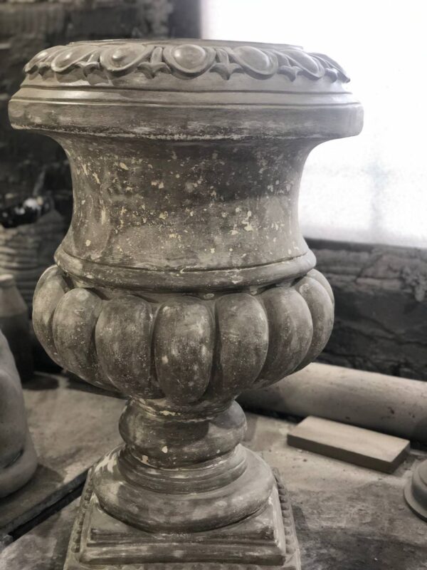 Бетонные вазоны для цветов на кладбище изготовлены с из архбетона со специальными противоморозными и пластифицирующими присадками. Метод производства (вибролитье) позволяет избежать образования полостей внутри изделия, а также выемок, которые могут испортить внешний вид. Бетон — тяжелый материал, поэтому при установке изделий можно обойтись и без пьедестала.