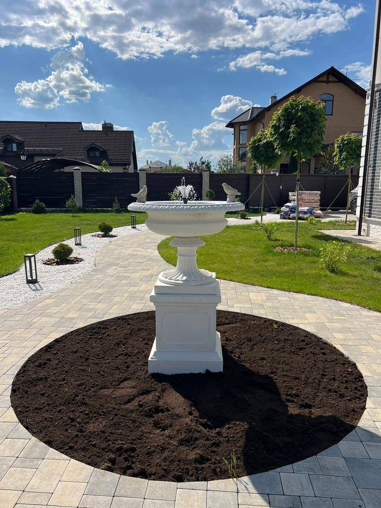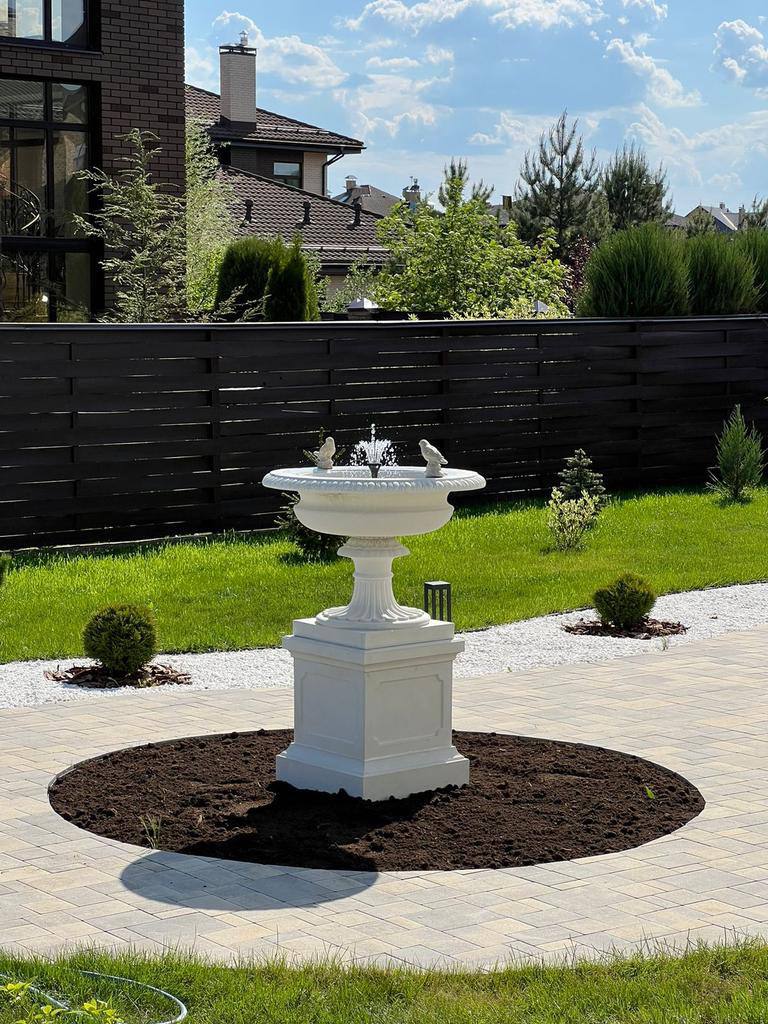 Создать красивый и функциональный акцент в саду можно разными способами, но одна из самых эффектных идей — добавить в ландшафт источник живой воды. В этом проекте мы покажем, как классический бетонный вазон «Сицилия» был преобразован в мини-фонтанчик-поилку для птиц, став центром уютной зоны на частном участке.