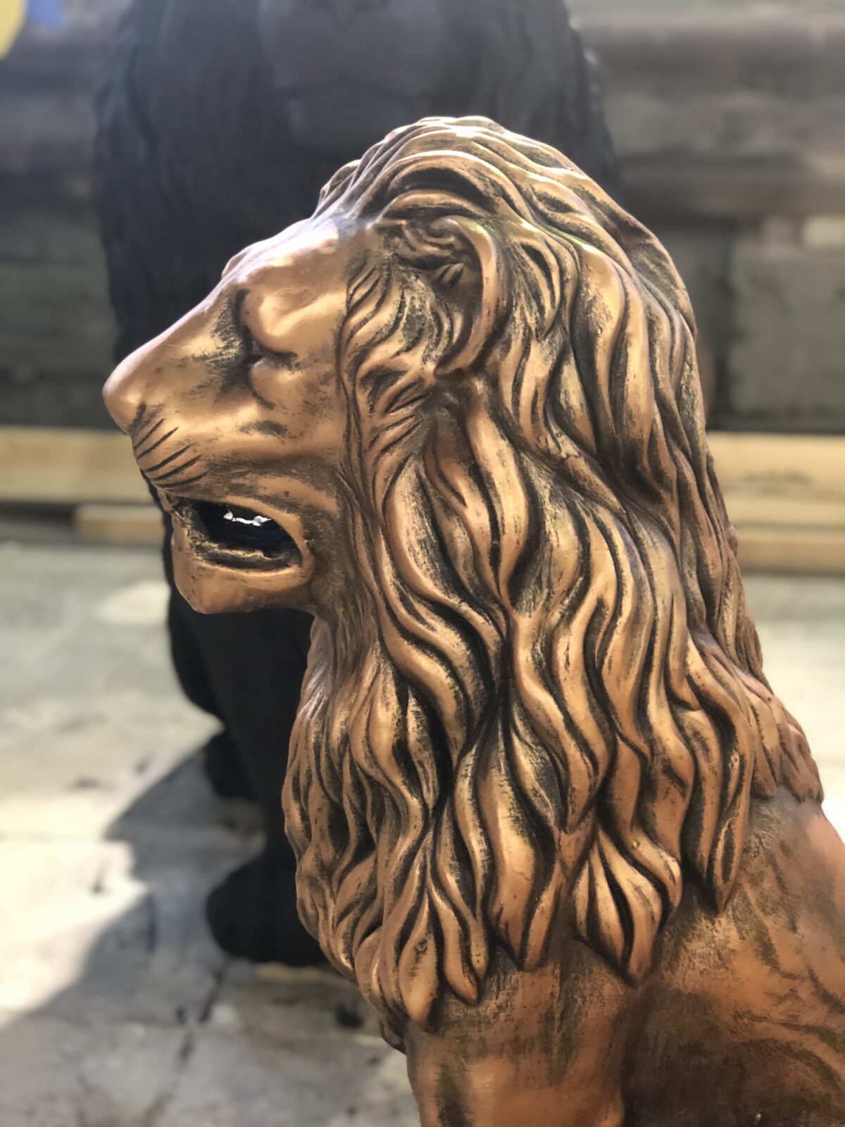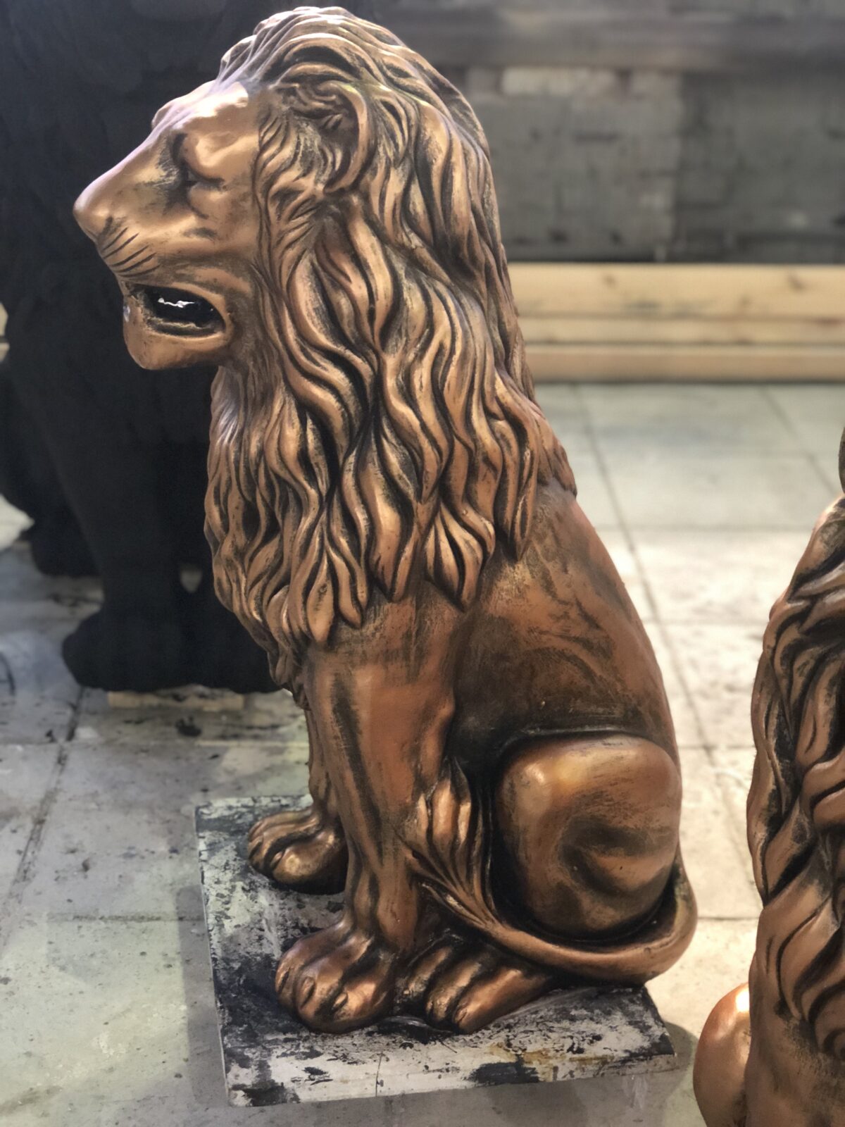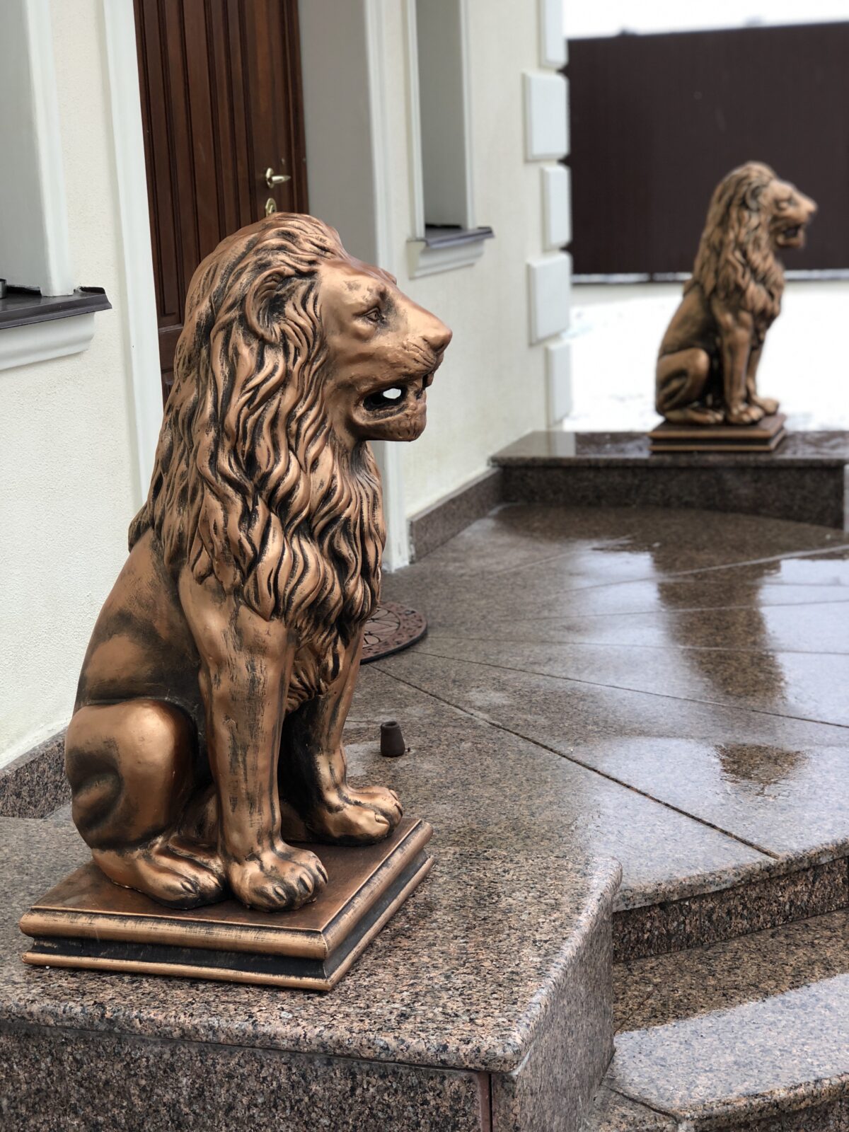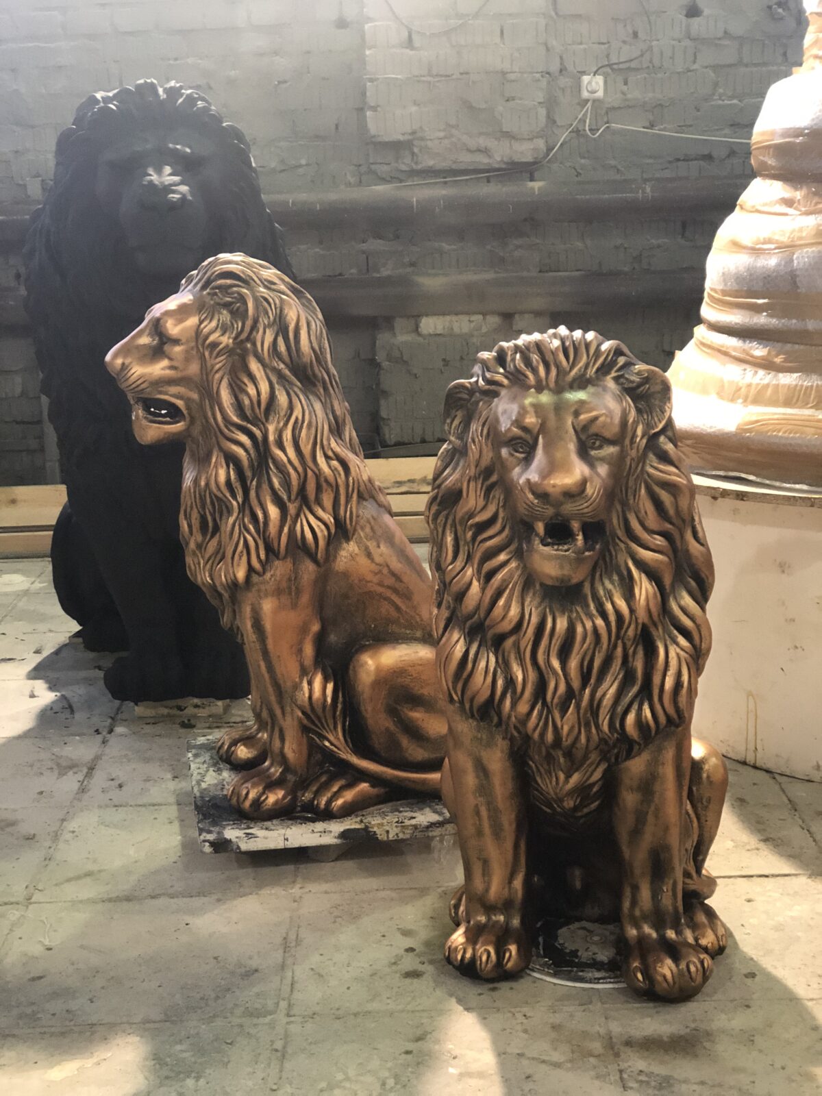 В результате львы имеют эффект состаренного благородного металла, устойчивы к снегу, дождю, солнцу и механическим воздействиям.
