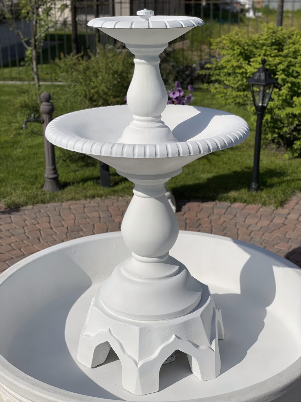 Заказчик изначально искал не просто фонтан, а центральную точку сада, ту точку, вокруг которой всё «дышит».Из нескольких вариантов выбор остановился на фонтане «Флоренция» с аркадианом — статном, нежном и в то же время наполненном движением.