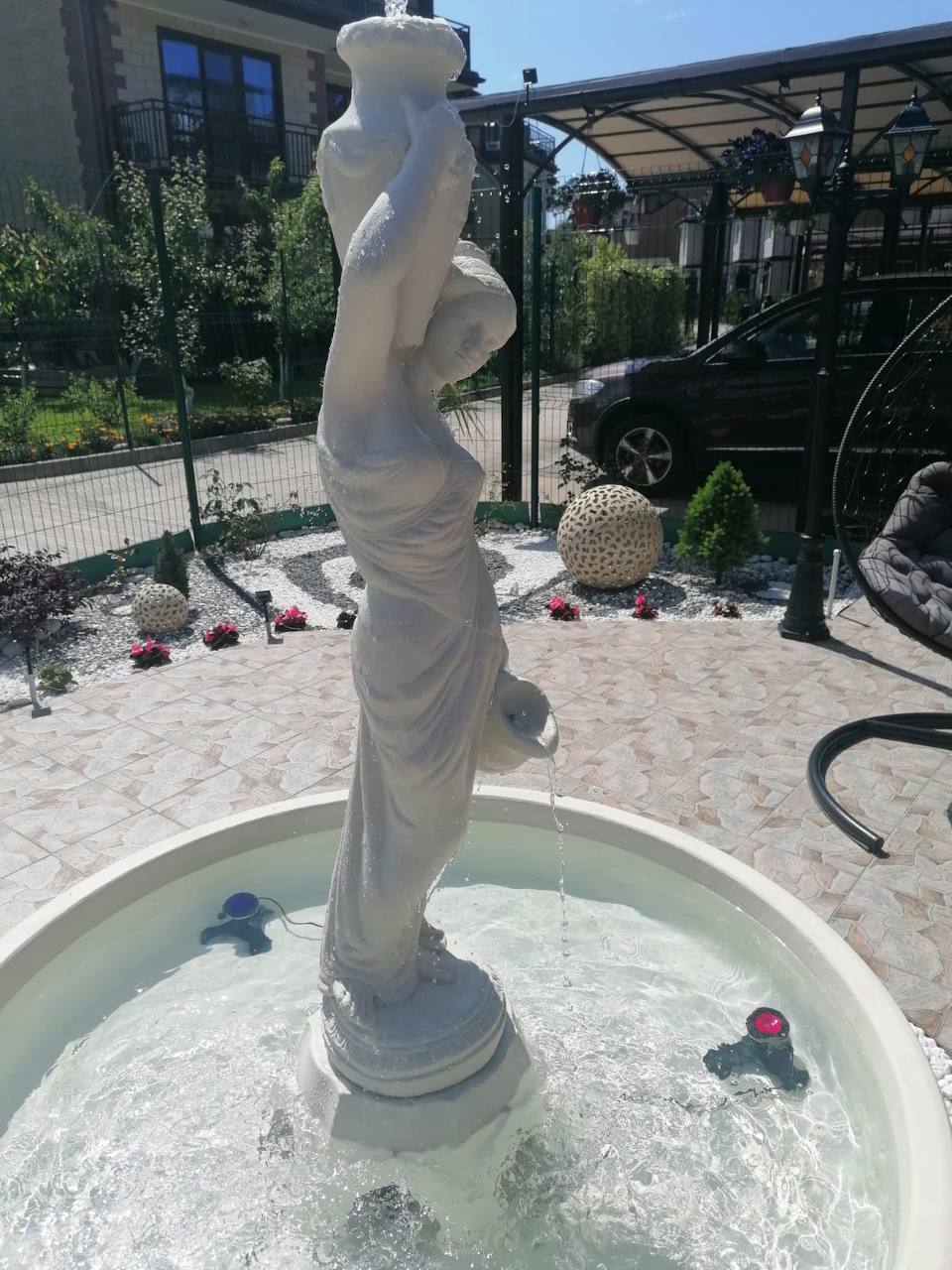 Иногда одно решение способно полностью изменить атмосферу двора. Так случилось и здесь, когда на участке появился фонтан «Флоренция» с девушкой с кувшинами — изящная композиция, созданная для тихих, мягких пространств, где ценят гармонию и свет.
