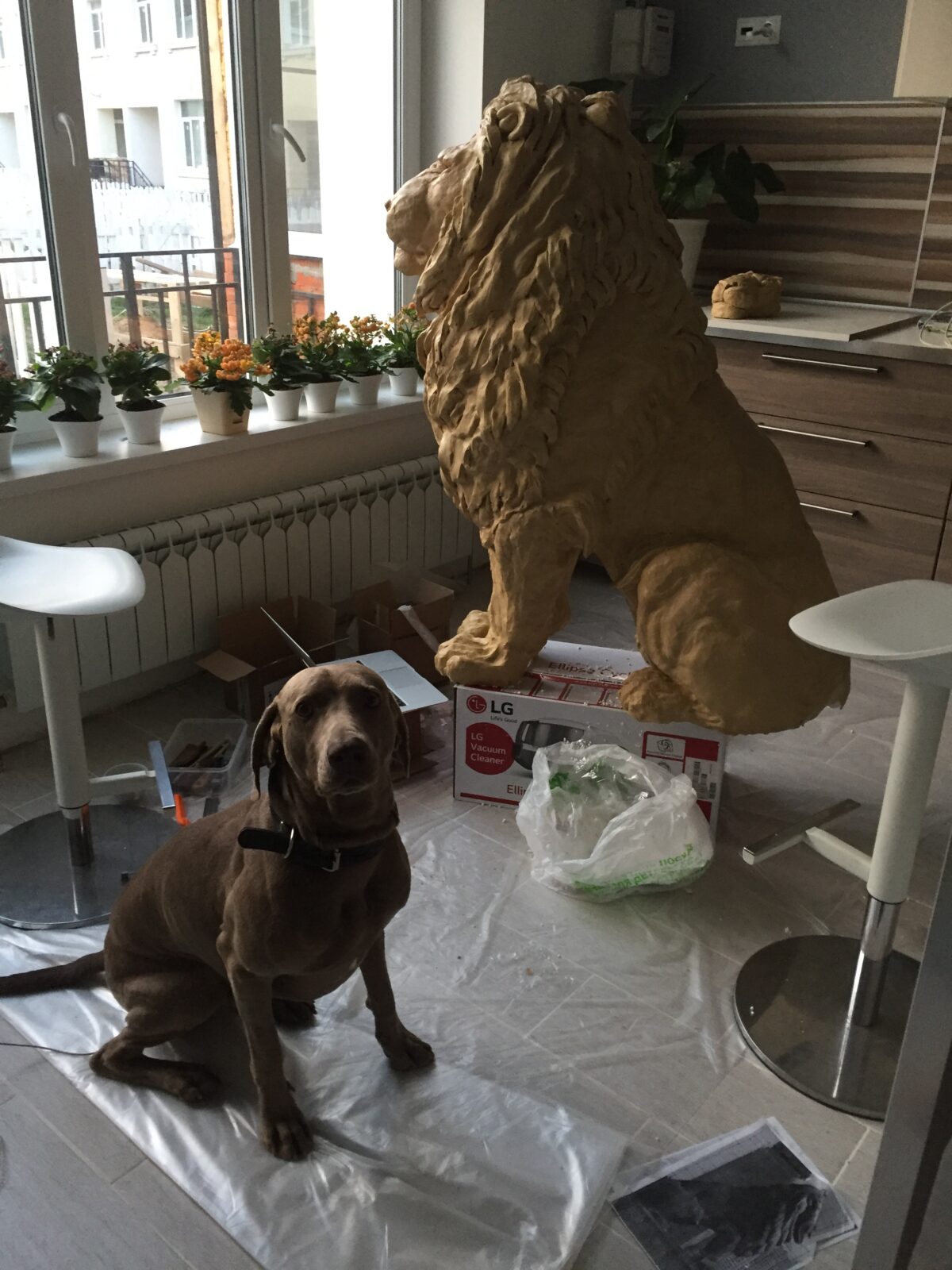 Причина была необычной: у её друзей в США тоже стояли львы у входа, и заказчица хотела, чтобы её композиция была крупнее, эффектнее и внушительнее — в качестве маленькой дружеской шутки и демонстрации статуса.